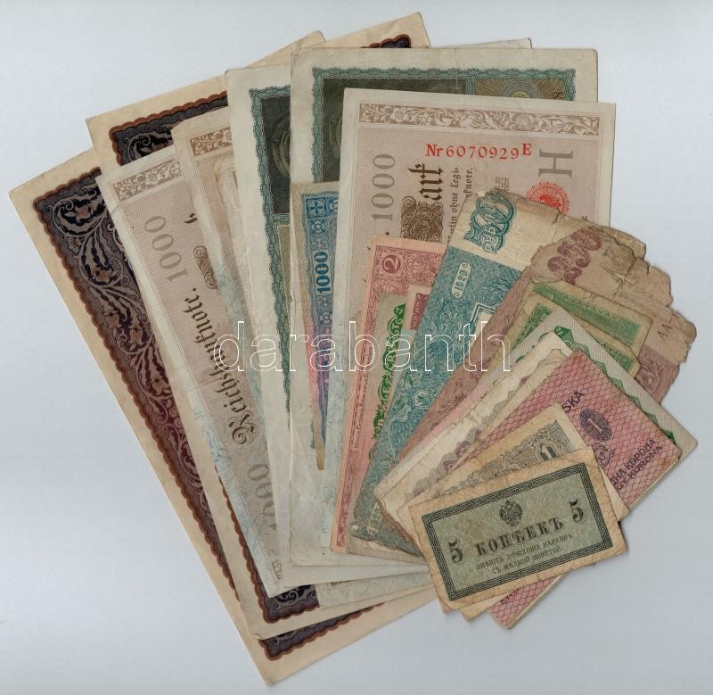 31db-os vegyes külföldi bankjegy tétel, közte érdekesebb darabokkal: Montenegró 1912. 2P lyukasztással érvénytelenítve; Orosz Birodalom 1915. 20k bélyegpénz; Románia / Német megszállás 1917. 25b T:III,III-