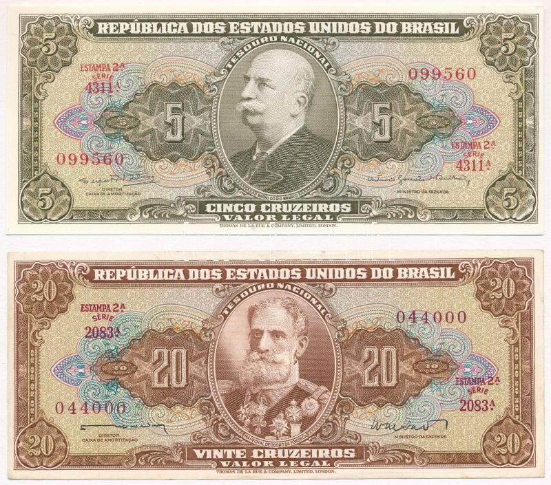 Brazil 1954-1958. 1 Cruzeiro + 1954-1958. 2 Cruzeiros + 1955. 2 Cruzeiros + 1964. 5 Cruzeiros + 1962. 20 Cruzeiros C:UNC