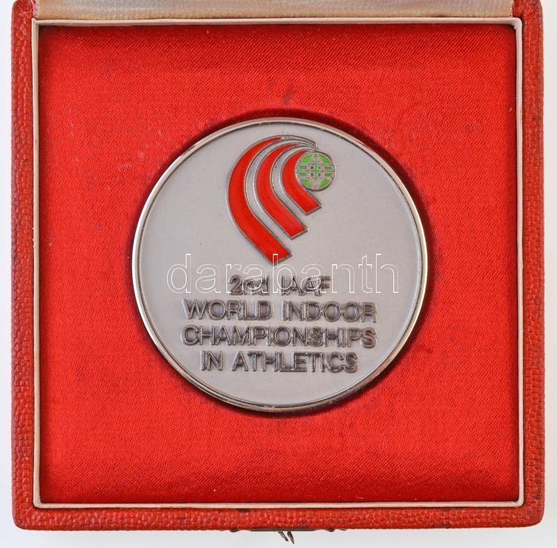 Description: Olaszország 1989. "II. Fedettpályás Atlétikai VB Budapest / Budapest Március 3-5 1989." zománcozott fém díjérem, dísztokban. Szign: Bertoni-Milano (60mm) T:2