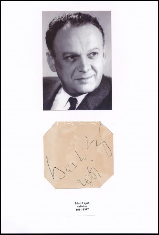 Básti Lajos (1911-1977) színész aláírása és egy modern fotója, papírla...