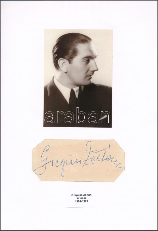 Greguss Zoltán (1904-1986) színész aláírása és modern fotója, papírlap...