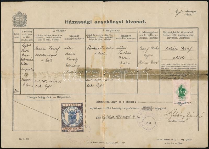 https://www.darabanth.com/en/330-Online-auction/330.0/Other-collectibles/Documents~500016/1939-Gyor-hazassagi-anyakonyvi-kivonat-okmanybelyeggel~II1839423