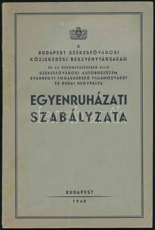 Description: 1940 Budapesti Székesfővárosi Közlekedési Rt. (B.SZ.K.Rt.) székesfővárosi autóbuszüzem, svábhegyi fogaskerekű villamosvasút és budai hegypálya egyenruházati szabályzata, 60 p.