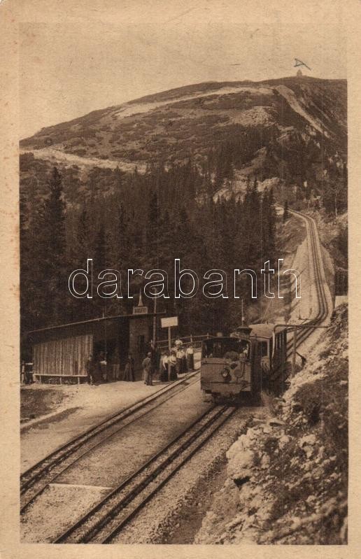Description: Puchberg am Schneeberg, Schneebergbahn, Zahnradbahn auf dem Hochschneeberg, Haltestelle Baumgartner. Phot. und Verlag L. Schuhmann / Schneeberg cogwheel railway's Baumgartner station (EK)