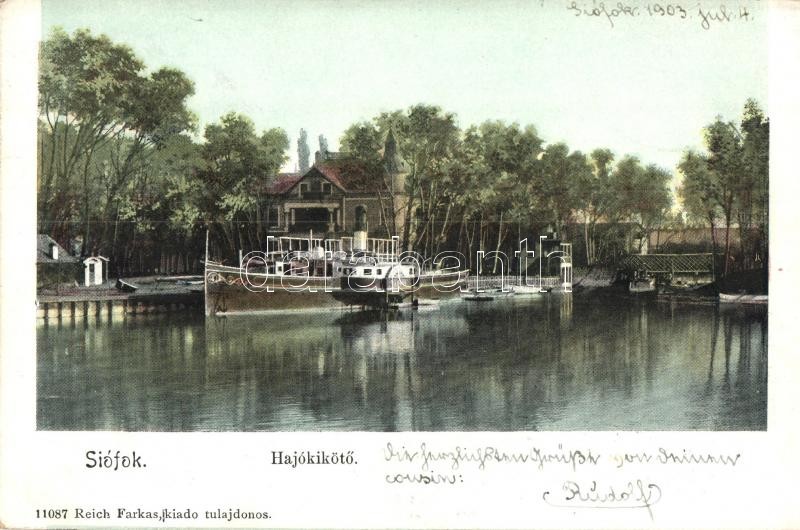 1903 Siófok, Hajókikötő, Baross gőzös, gőzhajó. Kiadja Reich Farkas