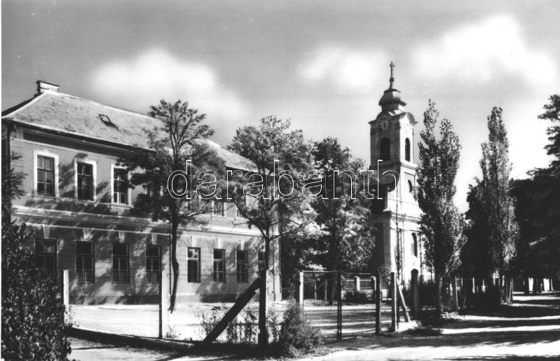 Description: Adony - 4 db modern városképes lap: Népbolt, kerékpár, Egészségház, Községi Tanács végrehajtó bizottsága, Tanácsháza, Általános iskola, templom (Képzőművészeti Alap)