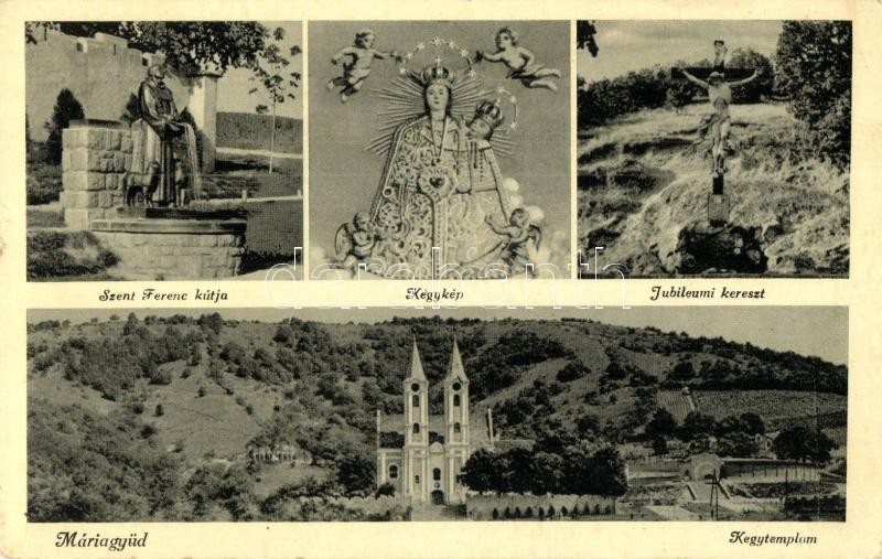 Máriagyűd (Siklós), Szent Ferenc kútja, Kegykép, Jubileumi kereszt, Kegytemplom. Szent Ferenc rend kiadása