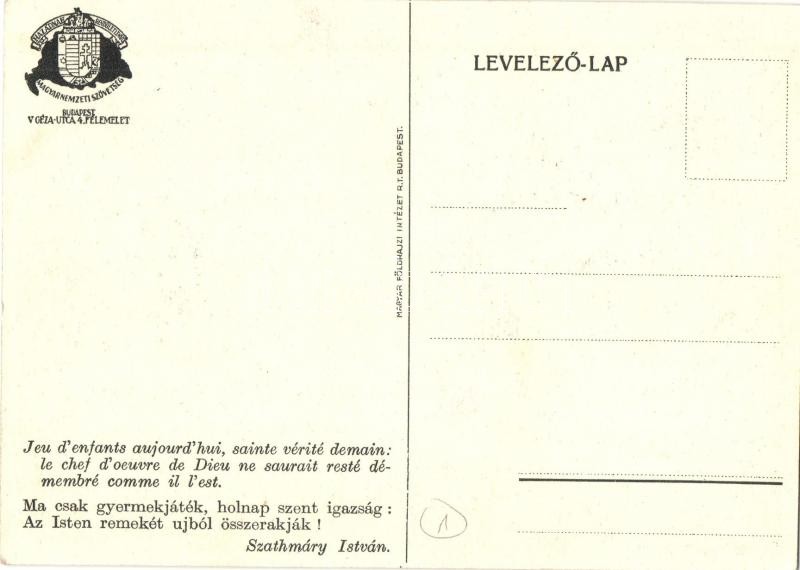 Ma csak gyermekjáték, holnap szent igazság: Az Isten remekét újból öss... https://www.darabanth.com/en/330-Online-auction/330.0/Postcards/Irredenta~2000057/Ma-csak-gyermekjatek-holnap-szent-igazsag-Az-Isten-remeket-ujbol-osszerakjak-Magyar-Nemze~II1843976