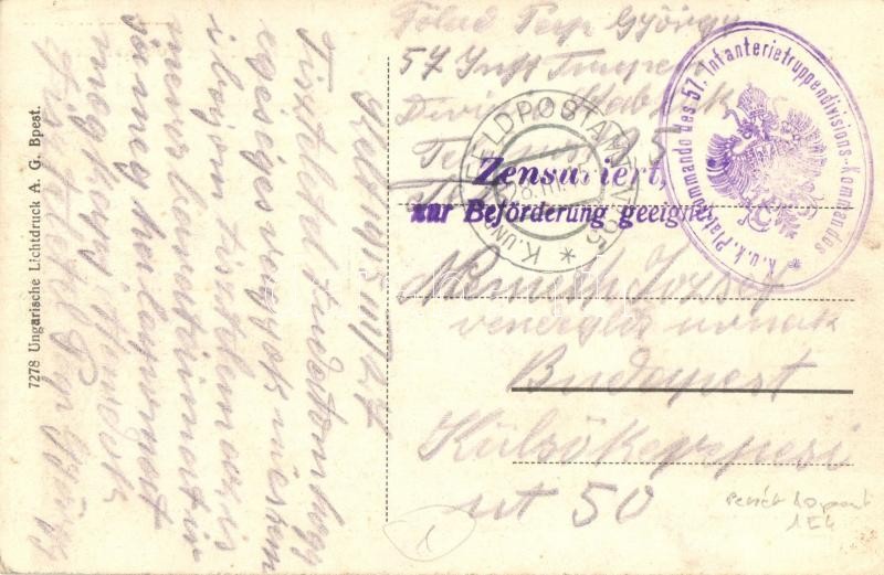 Description: Dovoznja kanona / Einschiffung von Kanonen / WWI K.u.k. military, cannon transport on river with a barge + K.u.K. Platzkommando des 57. Infanterietruppendivisions-Kommandos