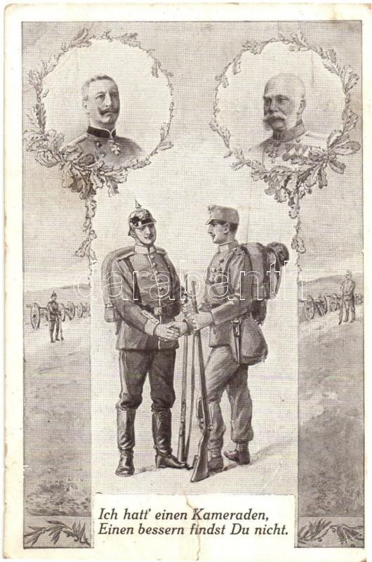 Description: Ich hatt einen Kameraden, Einen bessern findst Du nicht / WWI Austro-Hungarian K.u.K. Viribus Unitis military propaganda, Franz Joseph, Wilhelm II German Emperor (r)