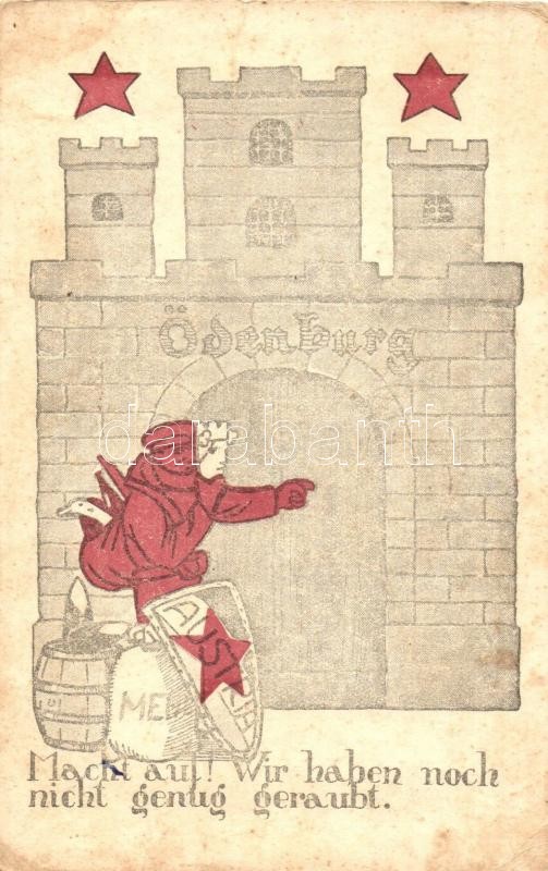 Description: Macht auf! Wir haben noch nicht genug geraubt! Anlässlich der sogenannten Befreiung des Burgenlandes / Nyisd ki! Még nem raboltunk eleget! Burgenland felszabadítása alkalmából: a soproni hazaszolgálat / Open it up! We haven't robbed enough yet! On the occasion of the liberation of Burgenland: the Ödenburg homeland service (fa)