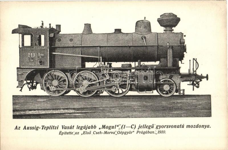 Az Aussig-Teplitzi Vasút legújabb Mogul (1-C) jellegű gyorsvonatú mozd... https://www.darabanth.com/en/330-Online-auction/330.0/Postcards/Railway~2000076/Az-Aussig-Teplitzi-Vasut-legujabb-Mogul-1-C-jellegu-gyorsvonatu-mozdonya-Epitette-az-Elso-~II1844098