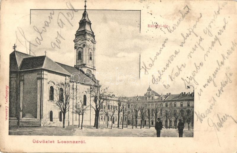 1907 Losonc, Lucenec; Kubinyi tér, templom / square, church
