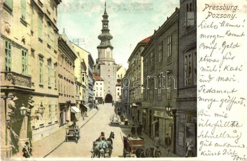 1908 Pozsony, Pressburg, Bratislava; Mihály kapu utca, Ifj. Ignátz Lun...