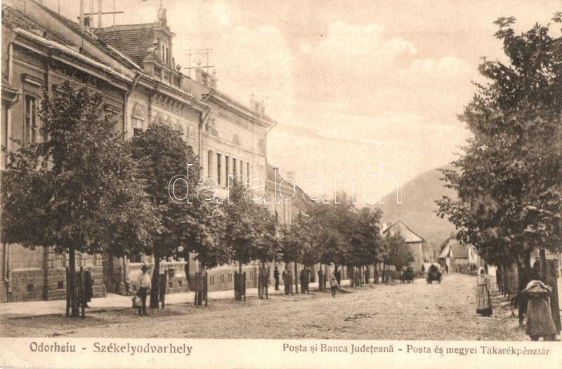 Székelyudvarhely, Odorheiu Secuiesc; Posta és megyei takarékpénztár, u...