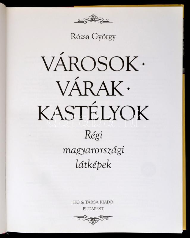 Rózsa György: Városok, várak, kastélyok. Régi magyarországi látképek. Bp.,1995, HG & Társa. Gazdag képanyaggal illusztrálva. Kiadói kartonált papÃrkötés, kiadói papÃr védÅ‘borÃtóban, magyar, német és angol nyelven.