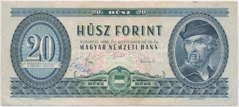 1980. 20Ft Fekete János, az Magyar Nemzeti Bank elnökhelyettesének saját kezű szignójával T:III