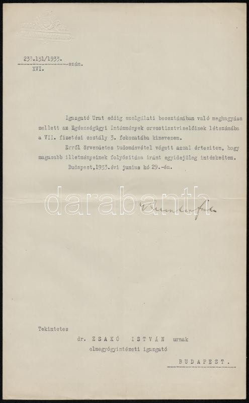 1933 Keresztes-Fischer Ferenc (1881-1948) belügyminiszter által saját ...