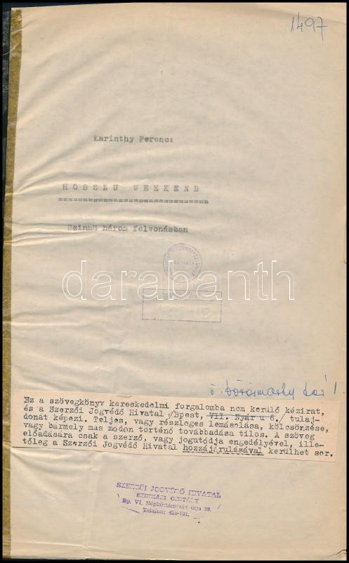 https://www.darabanth.com/en/331-Online-auction/331.0/Other-collectibles/Historical-documents-manuscripts~500017/Karinthy-Ferenc-Hosszu-weekend-Szinmu-harom-felvonasban-cca-1975-Szerzoi-Jogvedo-Hivata~II1351038
