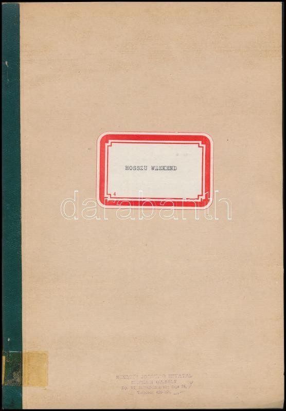 Karinthy Ferenc: Hosszú weekend - Színmű három felvonásban, cca 1975, Szerzői Jogvédő Hivatal - Színházi Osztály, Kiadatlan kéziratos szövegkönyv. Papírkötésben, írógéppel rögzítve.