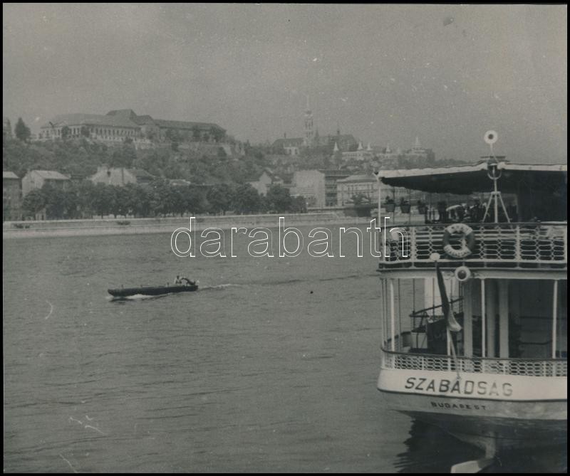 cca 1950 Budapest, Látkép a várhegyre, Szabadság gőzhajó, 21x26 cm