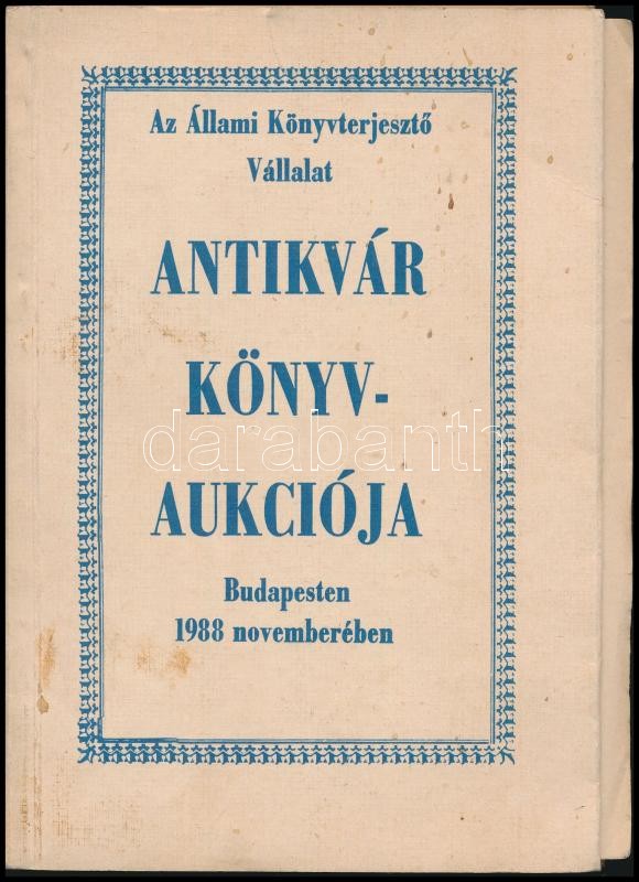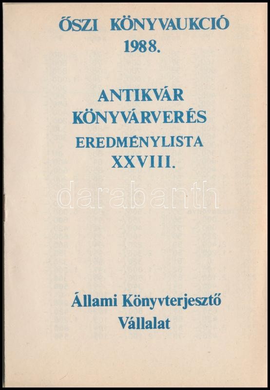https://www.darabanth.com/en/331-Online-auction/331.0/Other-collectibles/Printed-Materials~500029/1988-Oszi-konyvaukcio-Antikvar-konyvarveres-katalogusa-XXVIII-Bp-AKV-Papirkotesben~II1845839