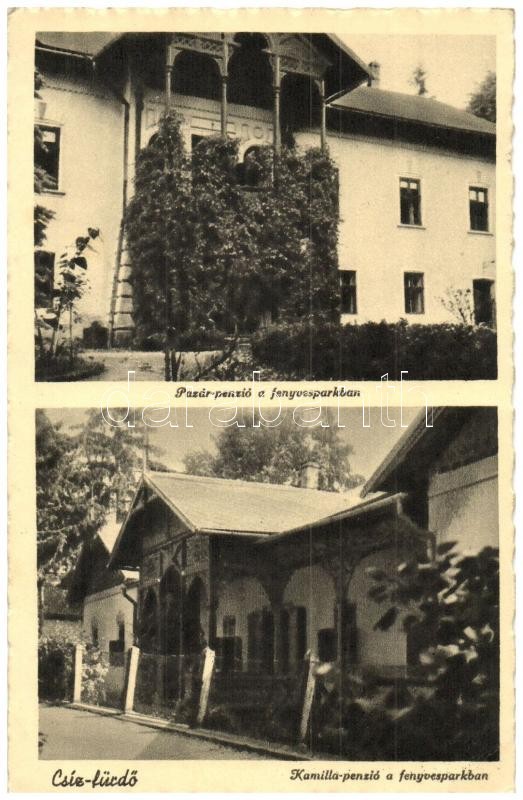 Csízfürdő, Csíz, Kúpele Cíz; A Pazár penzió és a Kamilla penzió a fenyvesparkban. Kiadja Szőke Imre / hotels, restaurant, villa (EK)