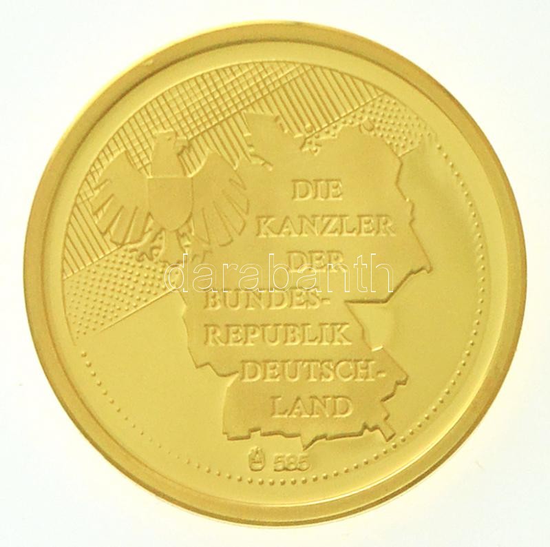 Description: Németország 1982. "Helmut Schmidt - 5. Német Szövetségi Kancellár / A Német Szövetségi Köztársaság Kancellárjai" Au emlékérem (3,15g/0.585/20mm) T:PP Germany 1982. "Helmut Schmidt - 5. Deutscher Bundeskanzler" Au commemorative medallion (3,15g/0.585/20mm) C:PP