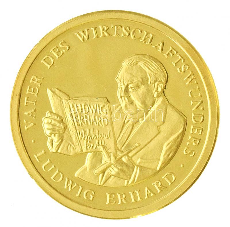 Description: Németország 1999. "Ludwig Erhard / A gazdasági csoda atyja / 50. éves a Német Szövetségi Köztársaság" jelzett Au emlékérem (3,10g/0.585/20mm) T:PP