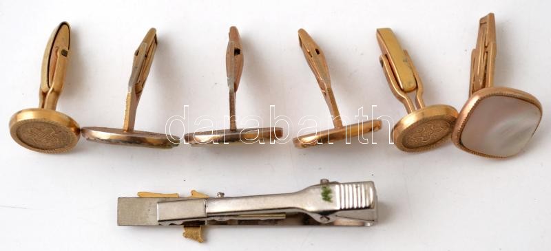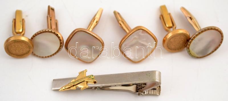 3 pár mandzsettagomb, egy repülős nyakkendőtű