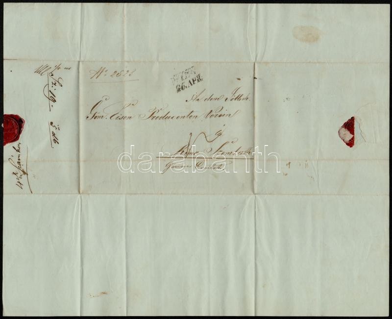 Description: 1845 A Magyar Középponti Vasút társaság levele a rimaszombati vasgyár társaságnak a következő 3 év rendeléseiről / Letter of the Hungarian Central Railways about the orders to the Rimaszombat iron factory