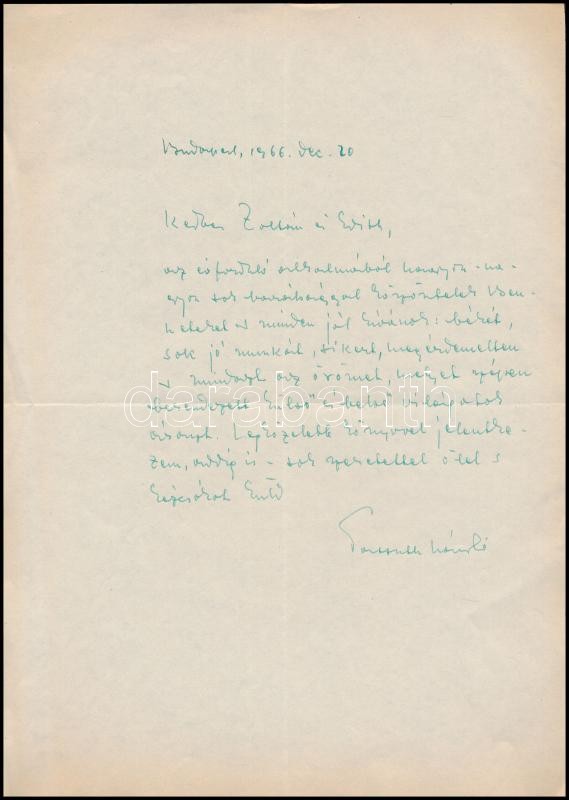 1966 Passsuth László (1900-1979) író saját kézzel írt levele Vas Zoltá...