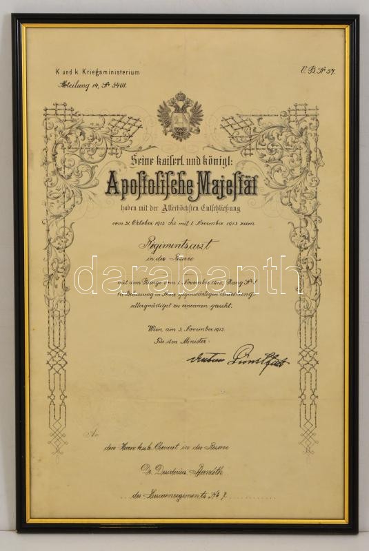 https://www.darabanth.com/en/332-Online-auction/332.0/Other-collectibles/Military~500028/1913-Ezredorvosi-kinevezes-szarazpecsettel-uvegezett-keretben-Regimentartzt-military-doctor~II1851856