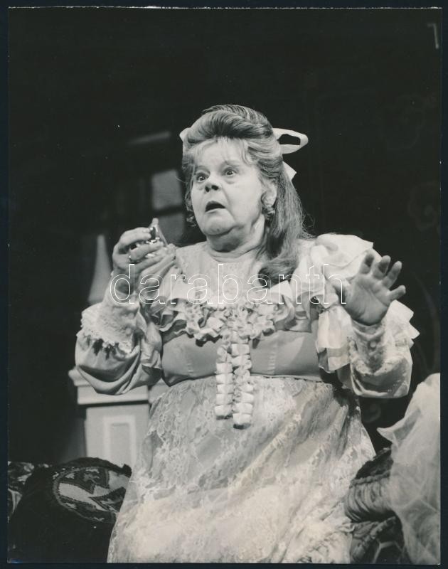 1975 Dayka Margit (1907-1986) egy színpadi jelenetben, Keleti Éva fotója, 16×13 cm