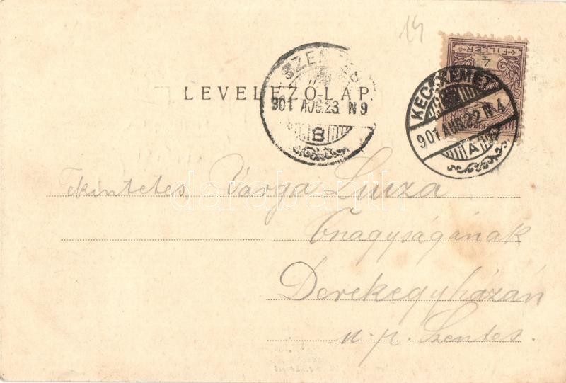 1901 Kecskemét, Piac tér, Schwarcz Soma, Pollák Lajos, Bóka Zsigmond üzlete, Gyógyszertár. Schwarcz Soma saját kiadása (fl)
