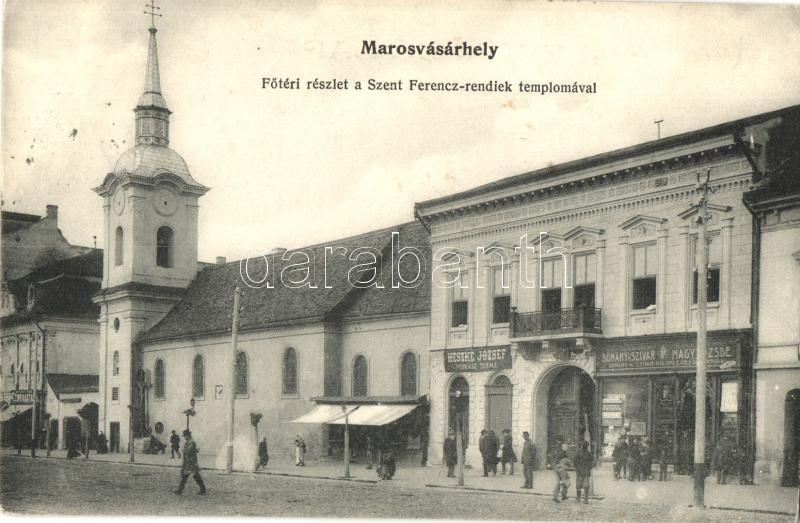 Marosvásárhely, Targu Mures; Fő tér, Szent Ferenc rendiek temploma, He... https://www.darabanth.com/en/332-Online-auction/332.0/Postcards/Transylvania~2000005/Marosvasarhely-Targu-Mures-Fo-ter-Szent-Ferenc-rendiek-temploma-Heszke-Jozsef-uzlete-dohC3~II1855714