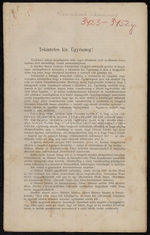 1920 Bp., A tekintetes budapesti királyi ügyészséghez címzett kérvény...