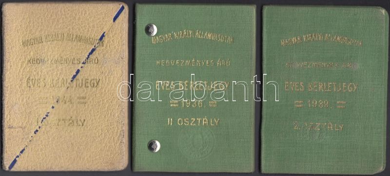 1936-1944 Magyar Királyi Államvasutak által kiállított bérletjegy igazolványok, 3 db