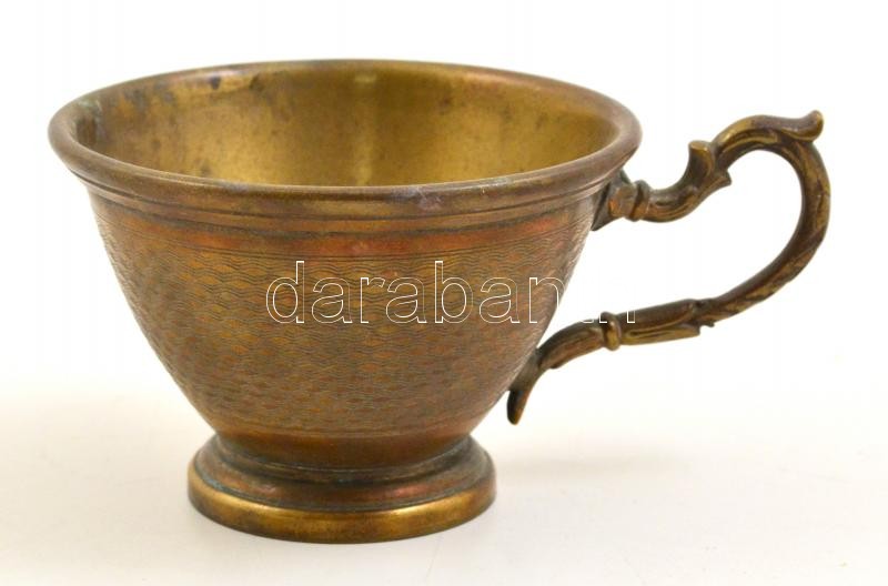 Dekoratív geometrikus mintás réz csésze, jelzett, d: 9,5 cm