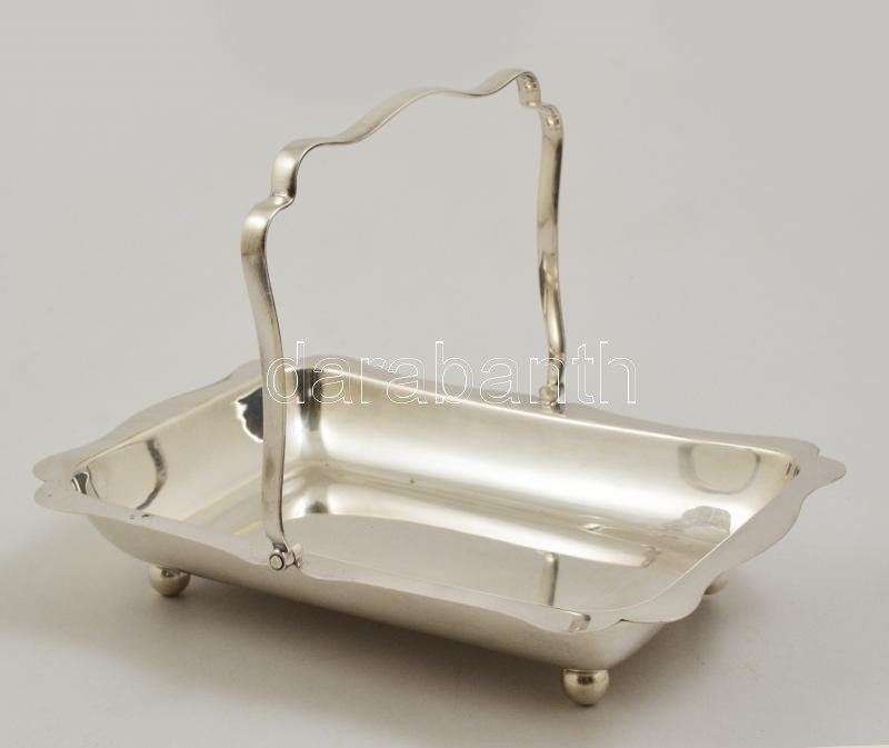Ezüstözött asztali tál fogóval, 27×19 cm