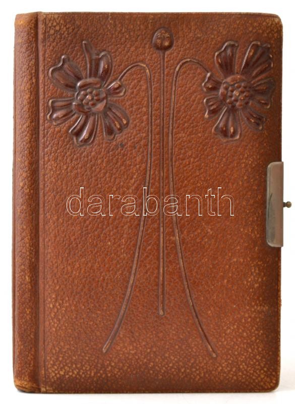 1906-1911 Emlékkönyv, bejegyzésekkel, rajzokkal, szecessziós bőr notes...