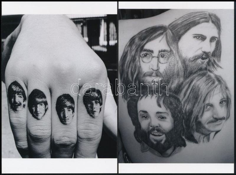 cca 1974 Beatles tetoválások, 4 db mai nagyítás, 10x15 cm