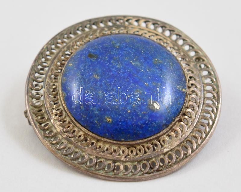 Ezüst(Ag) bross kék kővel, jelzett, d: 3,5 cm, bruttó: 10,5 g