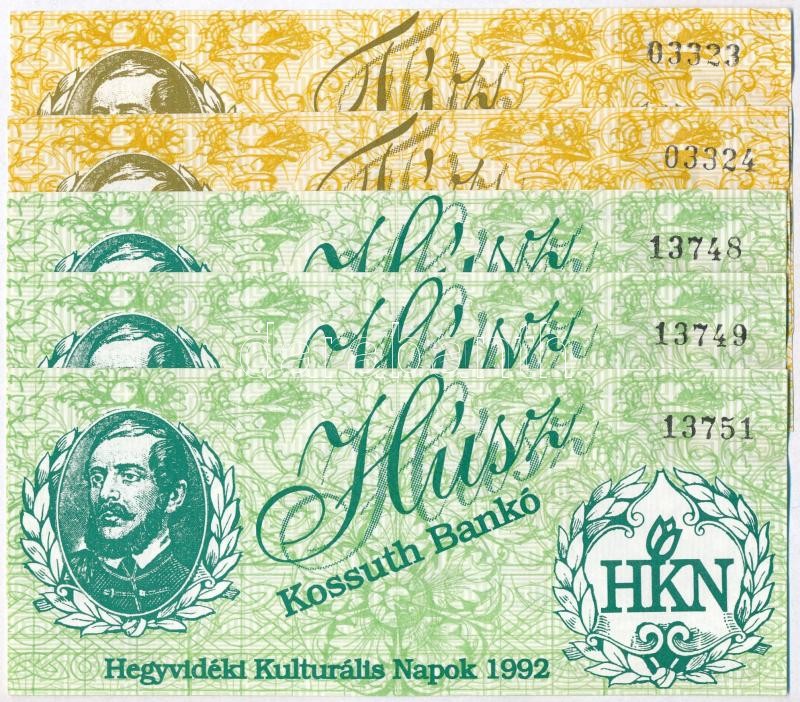 1992. "Hegyvidéki Kulturális Napok - Kossuth Bankó" 10Ft (2x) +"Hegyvidéki Kulturális Napok - Kossuth Bankó" 20Ft (3x) T:I-