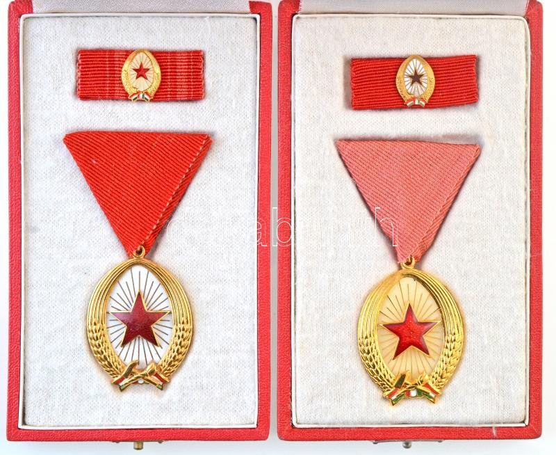 1964. "A Munka Érdemrend" arany fokozata, zománcozott Br kitüntetés szalagon, miniatűrrel és szalagsávval, tokban (2x) T:1-
