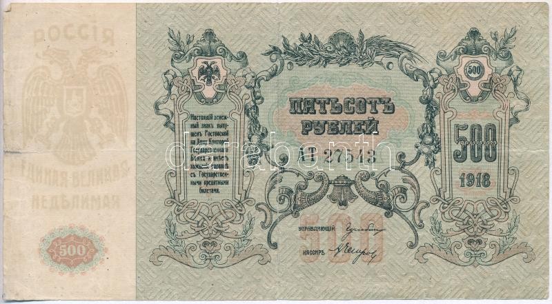 Description: Orosz Polgárháború / Dél-Oroszország / Gyenyikin és Wrangel hadserege 1918. 500R T:III tűly.