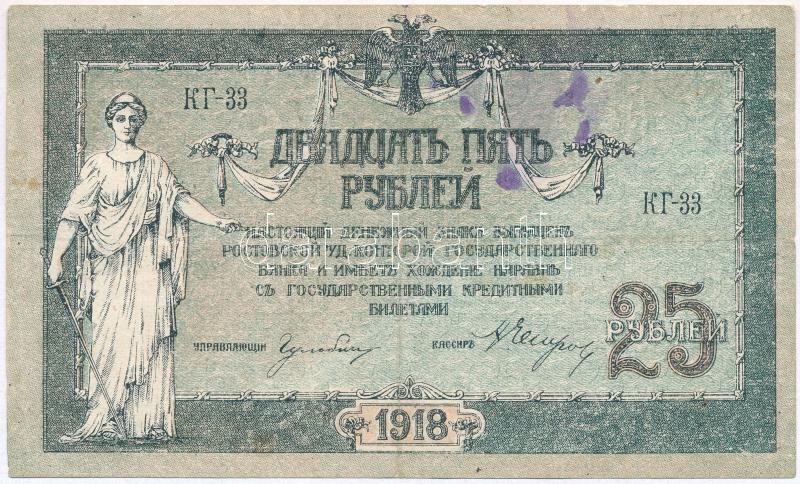 Orosz Polgárháború / Dél-Oroszország / Gyenyikin hadserege 1918. 25R T... https://www.darabanth.com/en/333-Online-auction/333.0/Numismatics/Worldwide-banknotes~2000012/Orosz-Polgarhaboru-Del-Oroszorszag-Gyenyikin-hadserege-1918-25R-TIII-tintafo-Russian-Ci~II1861497