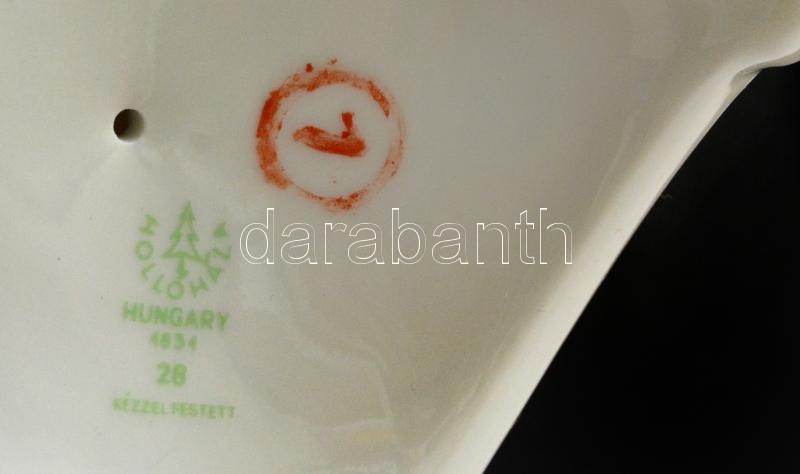 Hollóházi porcelán gyertyatartó, kézzel festett, jelzett, hibátlan, m:...