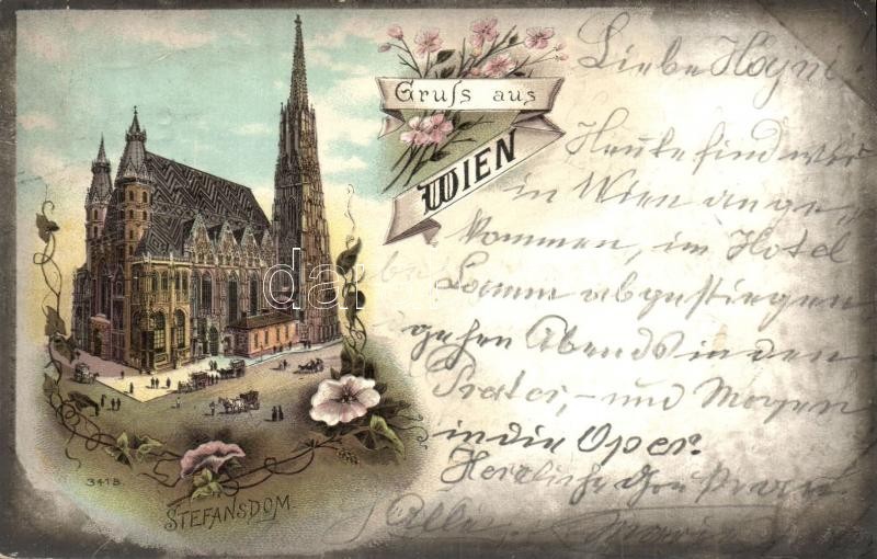~1899 Vienna, Wien I. Stefansdom / cathedral. Art Nouveau, floral, litho (Rb)