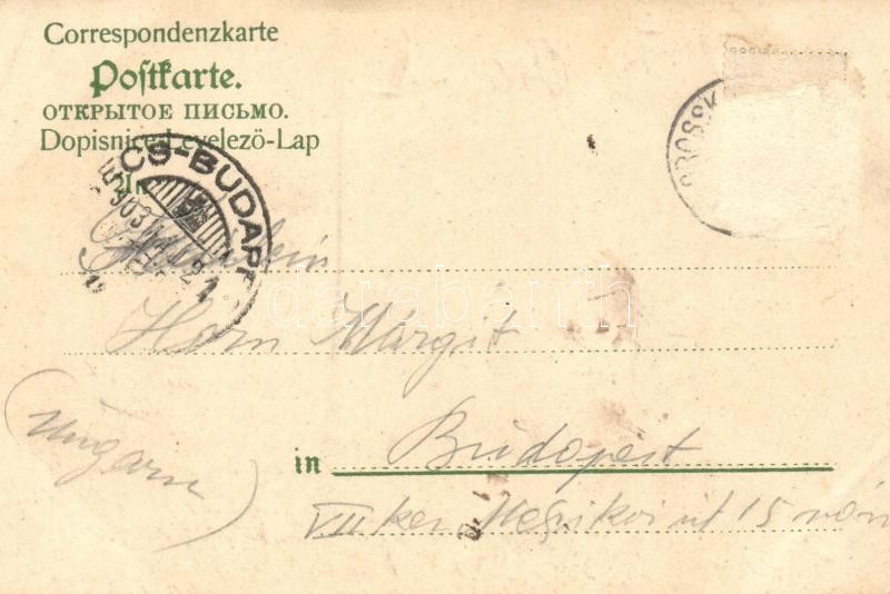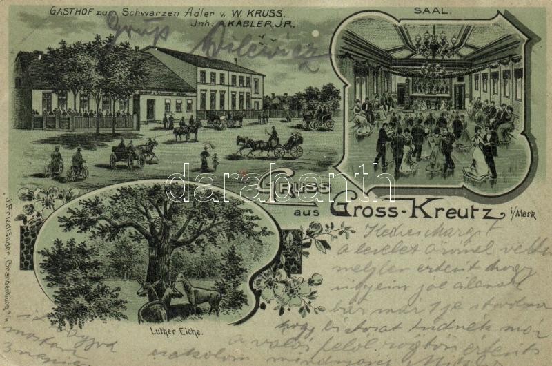1903 Gross Kreutz, Groß Kreutz (Havel); Gasthof zum Schwarzen Adler v. W. Kruss, Saal, Luthereiche / W. Kruss' inn, restaurant and hotel, bicycle, hall interior, Luther oak. J. Friedländer Art Nouveau, floral, litho (EM)